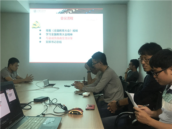 在学习全国教育大会精神的讨论中,支部党员各抒己见,踊跃发言。冯嘉伟同志认为,要努力提高教育工作者待遇和地位,作为学生,应该更加尊重老师。穆茂同志表示,要正确引导社会舆论,鼓励乡村教育。李子祥同志提出教育是对教育者综合素质的考验,作为教育者应言传身教,牢记初心。
