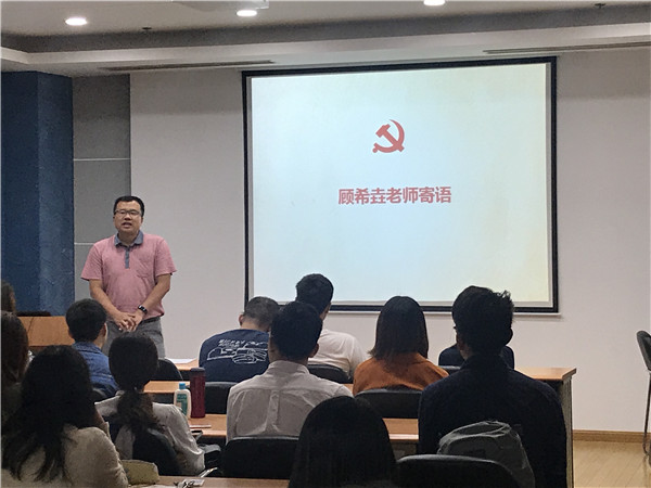 随后,顾希垚针对支部的发展现状对党员们提出了恳切而具有针对性的建议。他鼓励同学们在学校里勇于走出自己的科研舒适圈,毕业后敢于走向祖国乃至世界各地,同时也要具有忧患意识,积极开拓进取,怀抱崇高理想,着手前沿工作,坚实思想作风,时刻准备在党的领导下书写自己的青春辉煌。