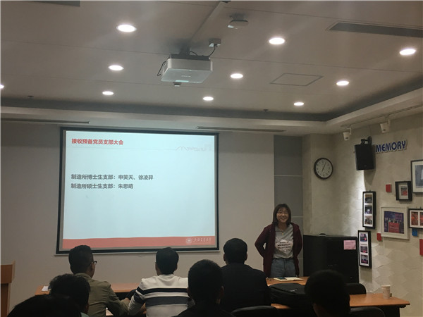 随后,制造所博士生党支部全票接收申笑天,徐凌羿两位预备党员成为正式党员,硕士生党支部全票接收朱思萌转为预备党员同志进入支部。
