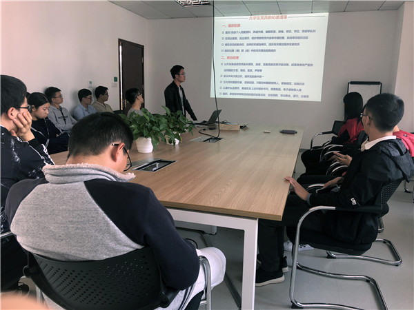 阮海涛强调了学院党委对基层党支部组织生活会的重视,以及学生党员参加组织生活会的相关考核要求,希望同学们加强党的知识学习,增强党性修养。阮海涛还根据自己在学院就业指导中心的工作经历,分析了党员学生在企业招聘中的优势,希望大家能够发挥好模范作用,努力科研,积极做好职业生涯规划。