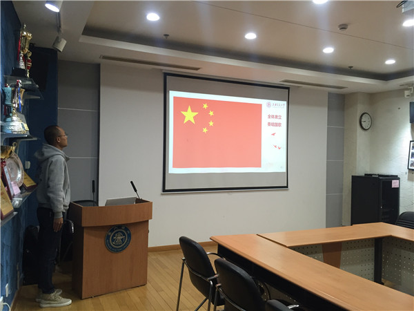大会议程第一项,支部书记冯苗带领所有党员齐唱国歌。