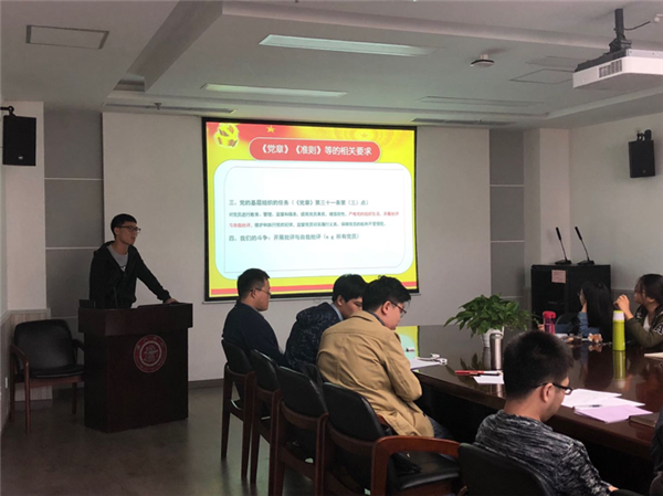 会议的第三、四项进行了发展对象入党投票表决以及预备党员转正投票表决,发展对象王江涛和甘甜在会议上汇报了提交入党申请书以来在思想和工作上的进步,硕士支部预备党员陈笃华,博士支部预备党员徐宗琦汇报了他们在预备党员考察期是如何以一名正式党员的要求严格要求自己的并向组织宣读了转正申请。 经过在场正式党员无记名投票表决后,党支部大会一致通过了以上申请。会议的最后与会党员陈笃华结合自身实践,表达了考察期以来自身的领悟与提高,并与大家进行了热烈的讨论。