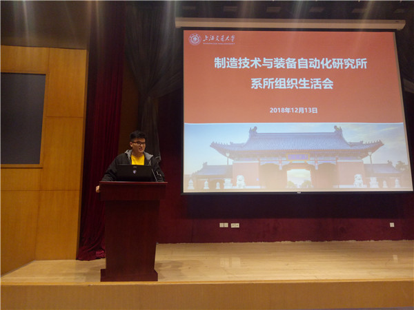 12月13日中午,制造技术与装备自动化研究所全体硕士生党员在机械动力学院高田会堂召开组织生活会,支部指导老师陈旦玥出席,本次生活会的主题是“双评双议双公开的党员民主评议会”。会议由制造所硕士党支部的副书记赵之谦主持。