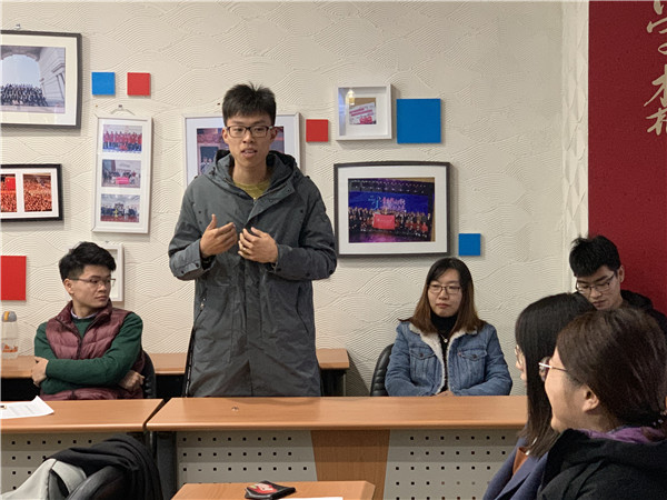 余天佐首先作了发言,希望能多听听博士生党员的想法,关注大家未来的打算规划,同时寄语大家多交流多沟通,在未来取得更大进步。