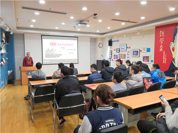 在毕业生远航教育环节,陆振华讲述了自己在校工作三十余年的感受,鼓励学生珍惜学校良好的学习环境,集中精力做好科研工作。同时,他讲述了汉语拼音方案的主要创制人之一,被称为“汉语拼音之父”的周有光的人生经历。周有光响应国家号召,从原本主修的经济转修语言,并在语言文字学和文化学领域取得了突出成就。陆老师借此告诫大家,个人的发展与国家的需求是息息相关的,作为交大的毕业生,理应让自己的人生目标立足于国家发展和社会进步,脚踏实地做事的同时也应当登高远望,明确奋斗的方向。
