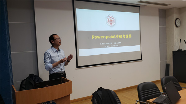 首先,章逸凡作为特邀嘉宾做了《Power-point中的大世界》的主题交流。他从PPT的作用以及如何做好PPT两个方面给与会师生分享了经验,并介绍了PPT中的高阶应用,精彩的分享让同学们耳目一新,学有所获。
