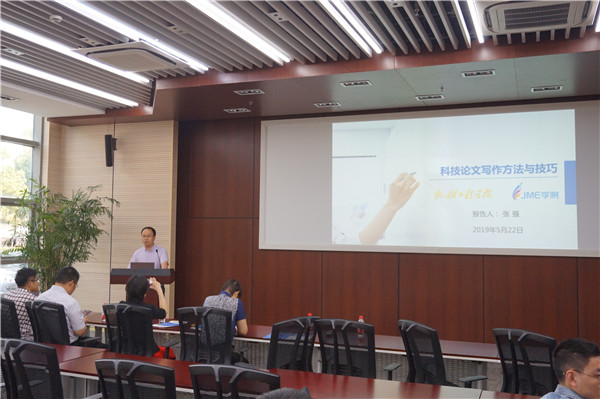 新媒体部部长张强结合自己十几年的从业经验,为同志们讲解科技论文写作方法及技巧,他指出论文是故事,不是实验报告,需要精心用图表展现论文的数据,也需要在这方面花心思,强调创新性,满足创新性的条件后还需要不断打磨自己的表达和写作技巧,做到科学严谨,同时了解期刊的投稿周期,给自己预留时间,才能保证自己顺利完成投稿,顺利毕业。