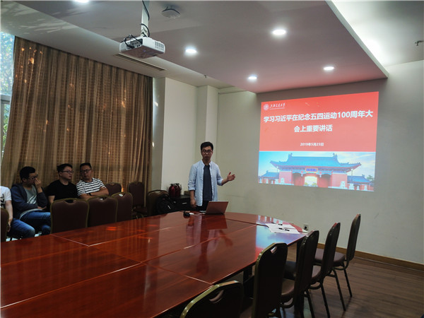 5月23日下午,热能工程所研究生党支部在机械动力学院F103会议室召开主题为 “学习习近平在纪念五四运动100周年大会上重要讲话”的组织生活会,会议由热能所研究生党支部书记张廷尧主持。