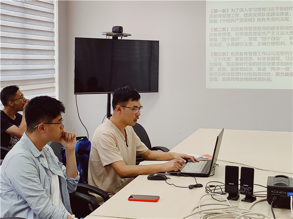 6月24日,薄板结构制造所硕士生党支部“学习《中国共产党党员教育管理工作条例》”专题组织生活会在机械楼D307会议室举行,支部指导老师陶晓红及支部成员出席会议,会议由支部书记赵航主持。
