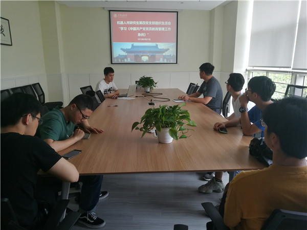 6月27日中午,机器人所研究生第四党支部在机械楼F207会议室召开“学习《中国共产党党员教育管理工作条例》”主题组织生活会。支部指导老师郭莉及支部党员参加了会议,会议由支部书记袁锦春主持。