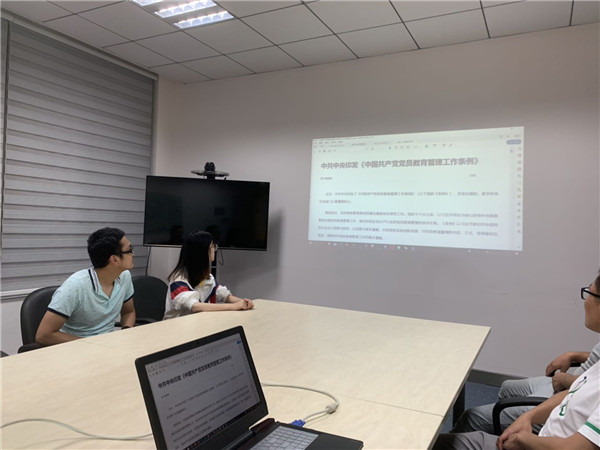 高一钊带领大家学习了《中国共产党党员教育管理工作条例》, 并重点就党员日常教育管理、党籍和党员组织关系管理、党员监督和组织处置、流动党员管理等章节的重要内容进行了解读,并勉励大家以《条例》为标准,规范自己的行为。