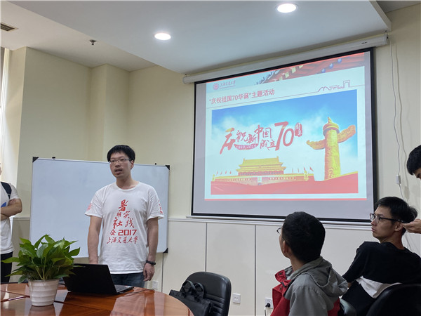 组织生活会的最后一项,开展了“庆祝祖国70华诞”主题活动,号召同学们积极参加国庆70周年纪念活动,如:10月1日将会发行《中华人民共和国成立七十周年》纪念邮票1套5枚,小型张1枚;10月1日将会在天安门广场举办阅兵式及庆祝晚会。希望各位同学与13亿人民一起,同庆祖国70华诞,同享伟大荣光,同铸复兴伟业!