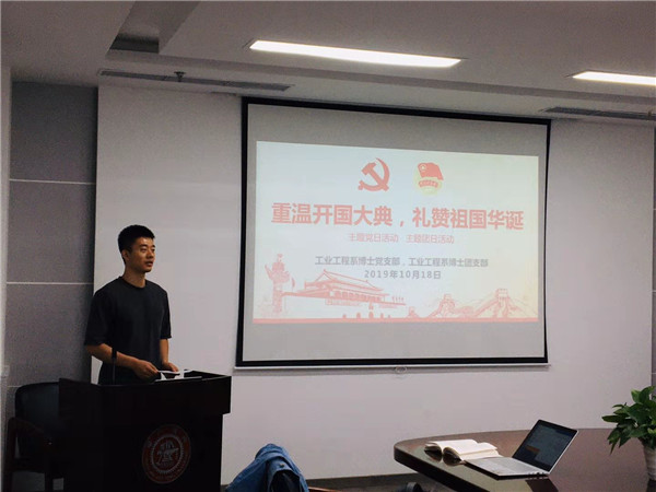 10月18日下午,beat365中文官方网站工业工程系博士研究生党团支部联合组织党员、入党积极分子和系所其他学生开展“重温开国大典,礼赞祖国华诞”主题党日活动与团日活动。