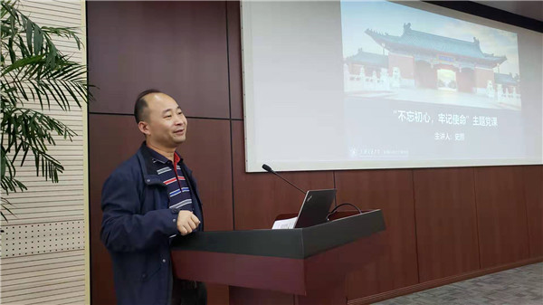随后,史熙为全体研究生党员带来了一堂生动的党课。他从科研工作的基本规律出发,希望同学们不忘读研的初心,能立足实际问题开展课题研究,要多问自己为什么,学会从根源了解问题,既要知其然,更要知其所以然。他通过分析具体事例,勉励大家要有家国情怀,敢于干大事,拥有大格局,努力承担起新时代赋予交大人的责任和使命。