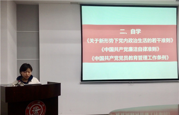 11月12日晚上,beat365中文官方网站工业工程与管理系硕士生党支部在机械动力学院F210举办学习中国共产党第十九届中央委员会第四次全体会议精神的组织生活会暨民主评议。由党支部书记陈美伶主持,思政教师陈旦玥和支部全体党员参加本次会议。