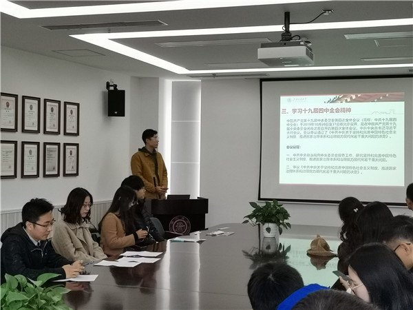 11月19日中午,制冷所研究生第一党支部在机械动力学院F210教室举办十一月党支部组织生活会。本次大会由制冷所研究生第一党支部党员王兆奇主持,共分为四项议程:制冷所研究生第一党支部2019年换届大会、“不忘初心、牢记使命”主题教育、学习十九届四中全会精神和《决定》,以及2019年民主评价工作。