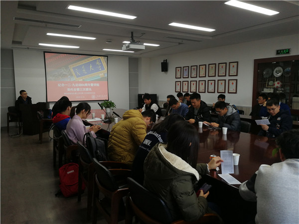 12月10日中午,制冷所研究生第二党支部在机械动力学院F210会议室举行12月党组织生活会,会议主题为“纪念一二·九运动84周年暨学院党代会第三次提名”,会议由党支部纪律委员李凡同志主持,共分为三项议程:纪念一·二九运动84周年,观看庆祝中华人民共和国成立70周年大型成就展网上展馆以及学院党代会第三次提名。