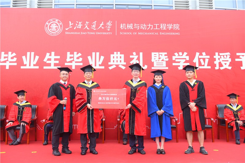 本届毕业生们为学院捐献了三万五千余元的毕业捐赠基金,祝愿学院的明天更加辉煌。杜朝辉、熊振华代表学院接受赠礼,并向毕业生回赠了毕业纪念册、纪念戒指、印章以及学位服。杜朝辉表示学位服是第一次作为纪念礼物赠送给同学们,希望礼物能一直陪伴着大家,承载着毕业生和学院之间的深厚情谊,大家看到礼物便能回想起在交大的美好回忆,也希望毕业生不畏艰险,勇于攻坚,大胆创新,锐意进取,做新时代里朝气蓬勃的追梦人,不辜负学院的期许,成为国家的脊梁。