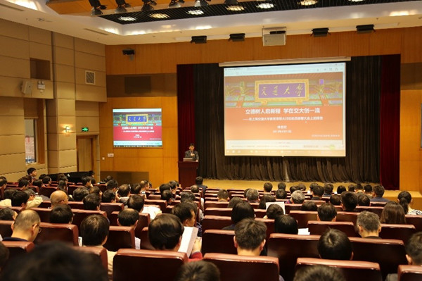 青年教师联谊会会长张文明作为教师代表发言,分享了十余年工作经历中的感悟和体会。他认为,青年教师肩负着科研与育人的双重责任,既要潜心科研,追求有影响力的学术成果,同时又要深刻领悟教书育人内涵,以“立德树人”为本,在传道授业解惑过程中培养学生崇尚科学、大胆创新,成为一名有爱心、耐心和责任心的好教师。