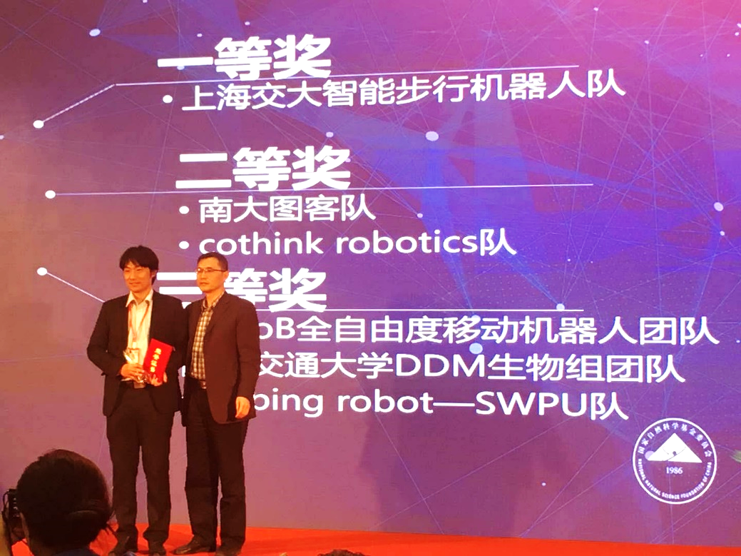 4月26-27日,由国家自然科学基金委员会主办,中国电子学会、中国机械工程学会联合承办,受到国家自然科学基金委员会“共融机器人基础理论与关键技术研究”重大研究计划支持的首届共融机器人挑战赛在北京举行,beat365中文官方网站智能步行机器团队分别获得了创新技术路演组一等奖和机器人青年创意组二等奖。