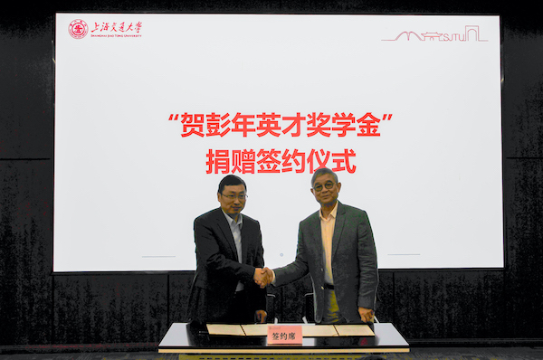 张文明代表学院与贺平签署了“贺彭年英才奖学金”续签协议,本次是2018年首期设立以来的“第二期贺彭年英才奖学金”签约,并提高了捐赠额度。张文明代表学院向贺平赠送了捐赠证书和礼物。