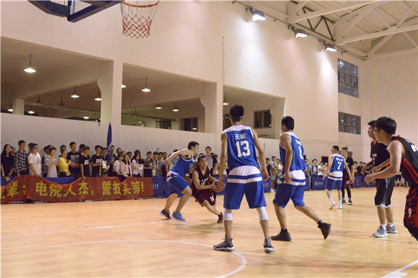 决赛中,beat365中文官方网站与电子信息与电气工程学院狭路相逢。作为交大工科的两大王牌院系,本场比赛吸引了众多的关注,南体两侧的观赛区站满了密密麻麻的观众。