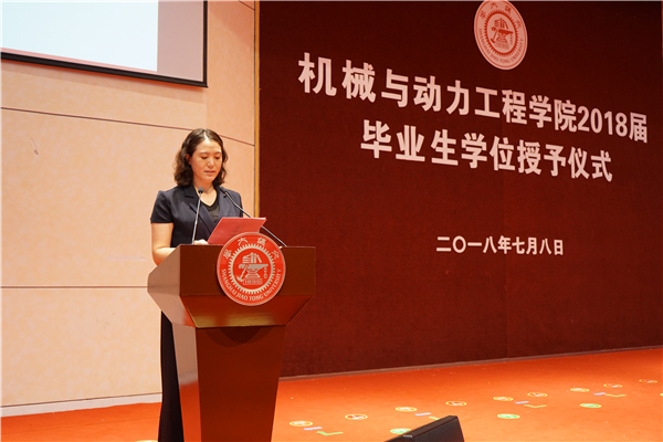 7月8日下午,beat365中文官方网站2018届毕业生学位授予仪式在陈瑞球楼报告厅顺利举行。beat365中文官方网站党委副书记、校长林忠钦,副教务长、教务处长吴静怡,beat365中文官方网站党委书记、院长杜朝辉,常务副院长彭志科,副院长王丽伟、盛鑫军,系所长来新民、刘成良、曹其新、赵长颖,系主任潘尔顺,核科学与工程学院院长顾汉洋,院长助理陈璐、易培云、张执南、李玉阳,14级本科生班主任毕庆贞、张波、丁烨、顾琳,本科教务办主任吴艳琼,14级思政林秀娟等出席学位授予仪式。仪式还邀请到中电投融和融资租赁有限公司陈礼丽,中科新松有限公司于靓、李法设等企业嘉宾出席。2018届毕业生及亲友共同见证这庄严神圣的时刻。仪式由学院党委副书记顾希垚主持。
