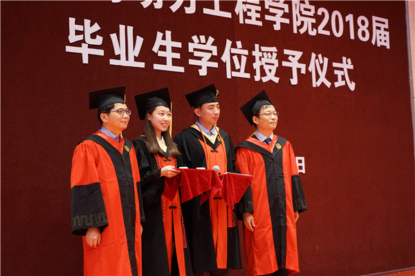 2018届毕业生人才辈出,副院长王丽伟依次宣读了“2018届荣誉学位毕业生名单”,“钱学森班毕业生名单”,“上海市优秀毕业生名单”和“beat365中文官方网站优秀毕业生名单”。随后的颁奖仪式中,优秀毕业生接过嘉宾们手中的毕业证书并合影留念,更加深刻地意识到自己肩头的责任。