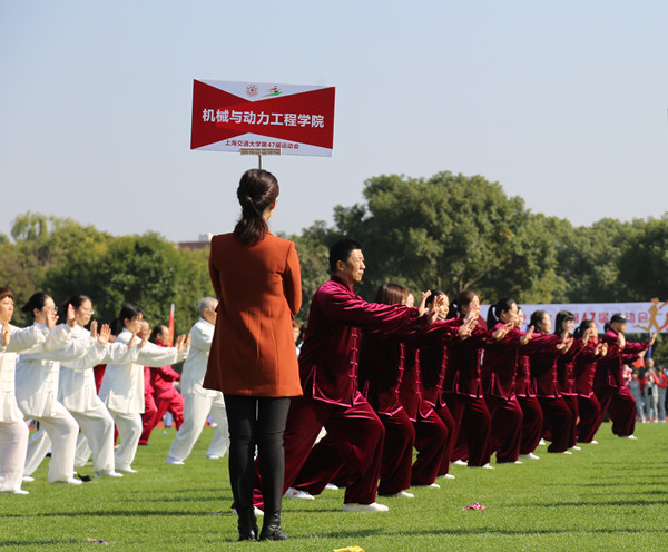 校教工乒乓协会会长、全国先进工作者王如竹,校教工羽毛球协会会长朱向阳担任会旗教师护卫队。入场巡游中,第一艘万吨轮、第一颗人造卫星、新一代超大型运载火箭三个模型,以及行驶着的新能源智能网汽车展现着机械动力人“上天入地”的聪明才智和“为国护航”的实际行动,憨态可掬的吉祥物“锤锤”引领学院师生方阵走向新征程。入场巡游创意十足,获得了“一等奖”;在教职工广播操比赛中,学院代表队英姿飒爽、动作整齐,荣获“一等奖”。