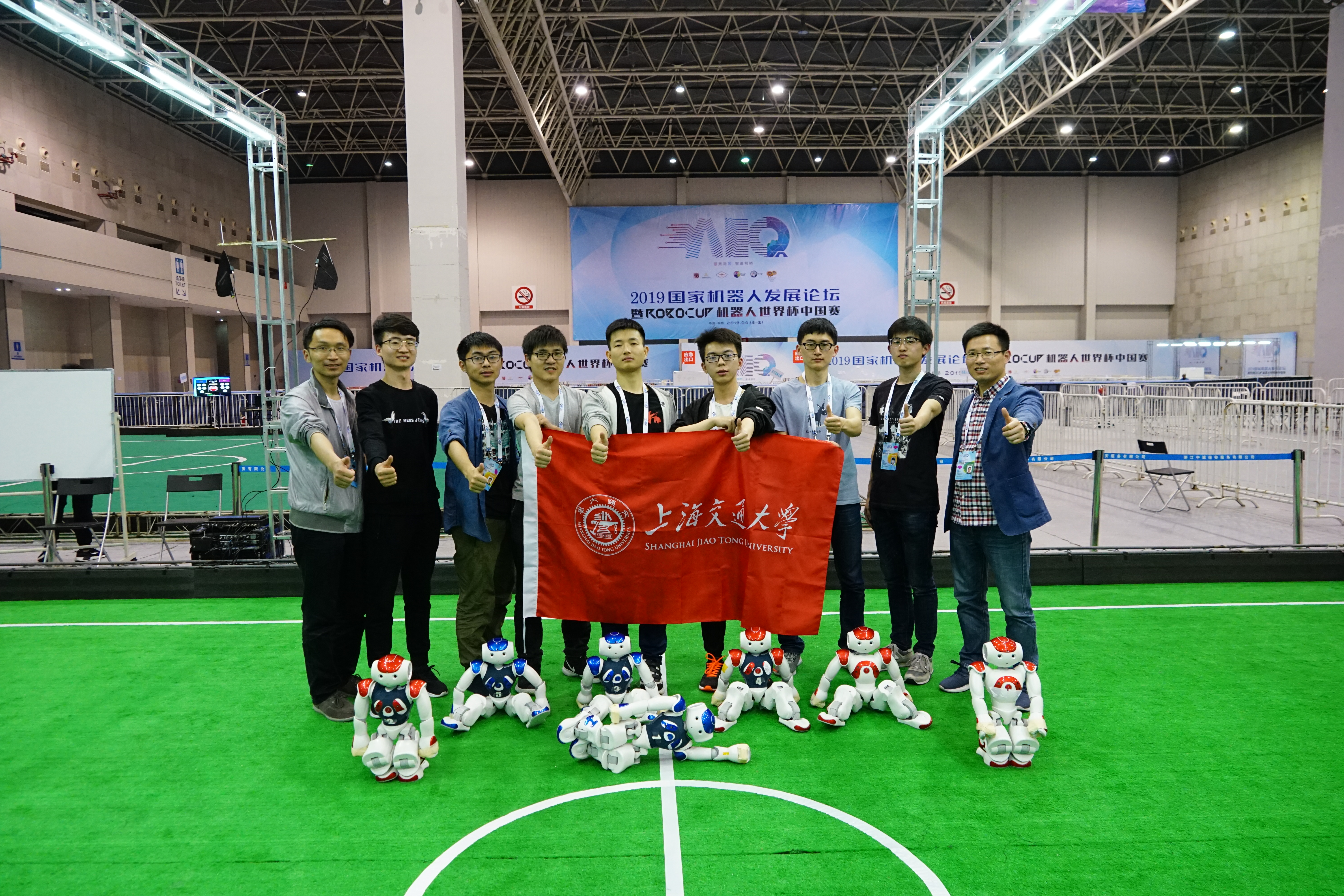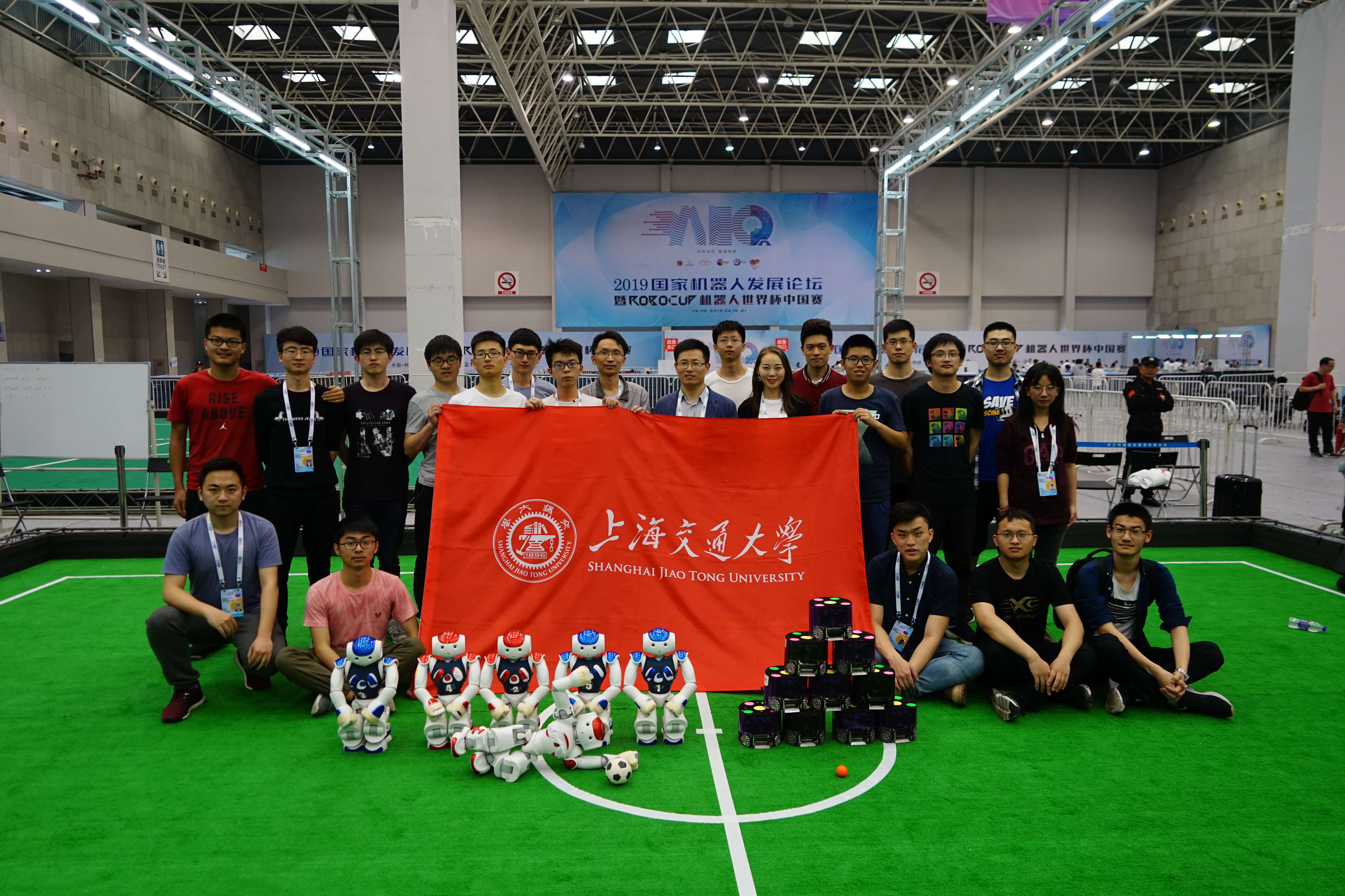 4月21日,RoboCup机器人2019世界杯中国赛落幕,beat365官网学子组成的“交龙队”获标准平台组足球机器人竞赛亚军,参与的“SRC战队”获小型组足球机器人竞赛冠军。此次获奖的两支队伍共20人参赛,其中14人来自beat365官网。beat365官网朱笑笑老师担任“交龙队”主要指导教师。