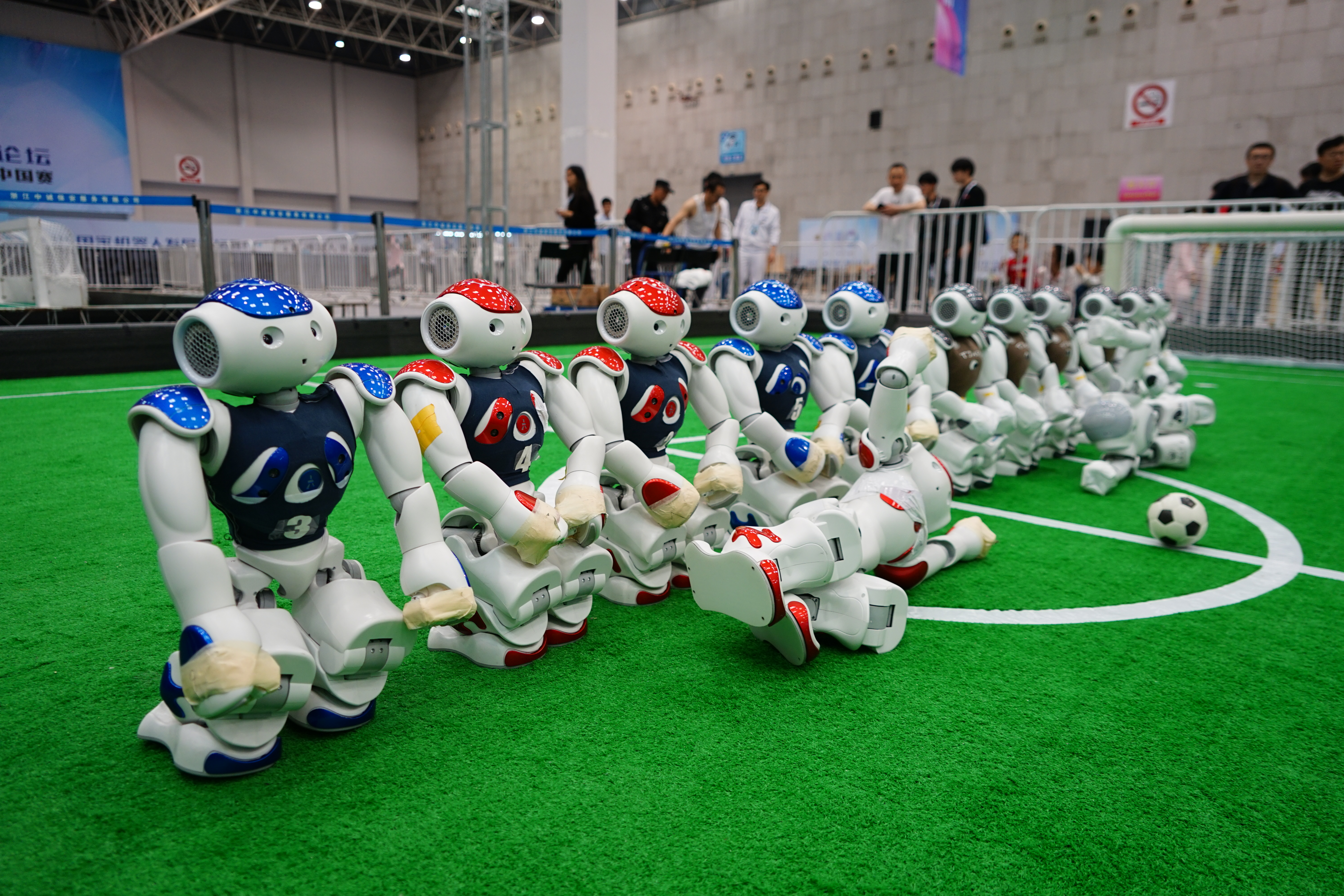 双方队伍都使用5台(或者更少数量)且硬件相同的Nao仿人机器人,让Nao踢足球。这里面几乎涵盖了机器学和人工智能的大部分领域,包括机器视觉,运动控制,多机协同,路径规划,全局定位,自主避障,双足步态。比赛过程中,每台Nao都只被允许与裁判或者友方机器人通信,除此之外不允许任何其他形式的通讯。学生通过编程,让机器人能够具有踢足球的能力,比拼的是机器人的比赛策略、双足步行稳定性、踢球动作、多机器人协作等,因此编程算法是关键。来自beat365中文官方网站、同济大学、西安交通大学、北京科技大学、华东师范大学、武汉大学等16支队伍报名参赛。“交龙队”在本次比赛中,较去年在整体策略上有明显提升,仍以不败战绩闯入决赛,最后获得了本次比赛亚军。