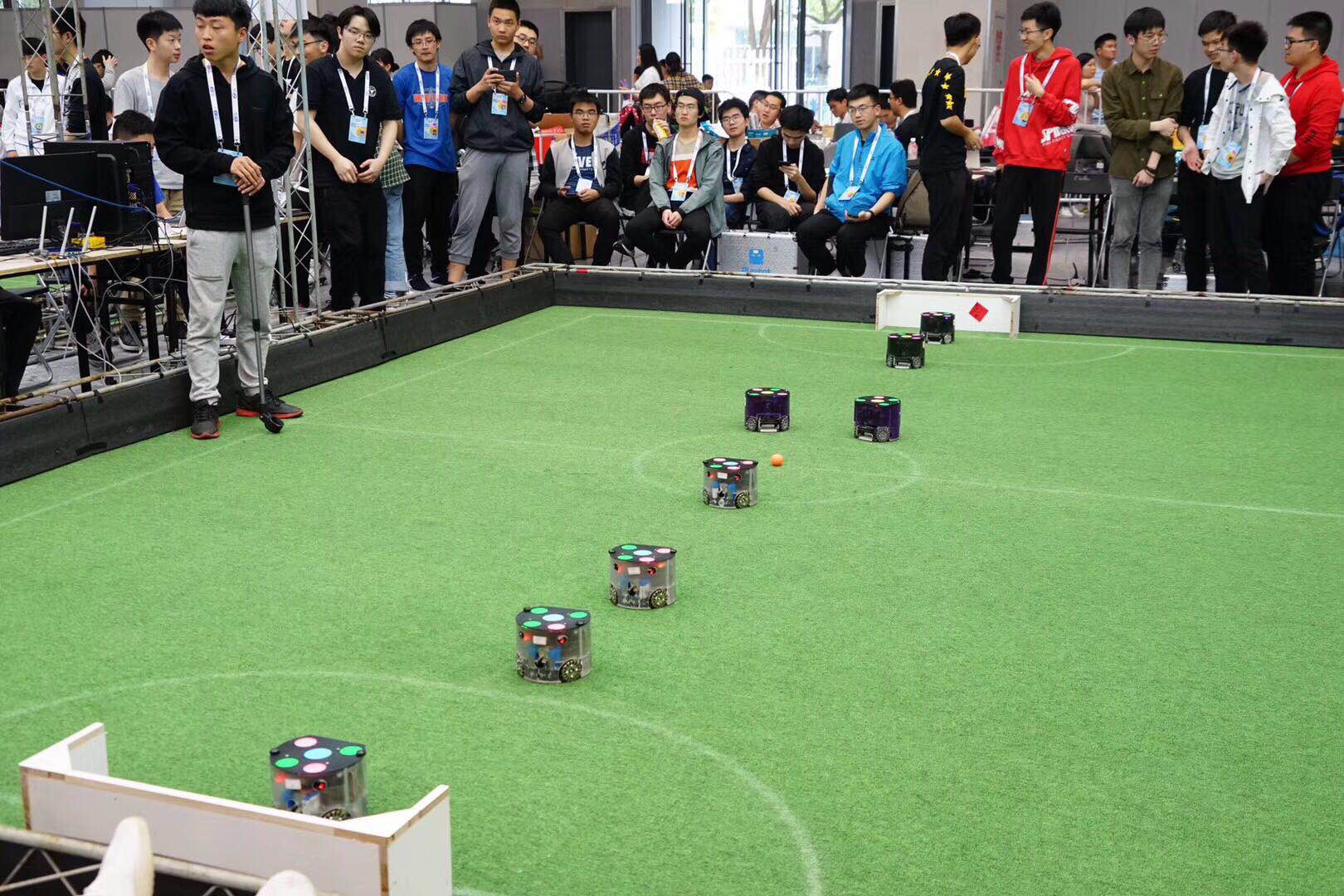小型组轮式机器人足球比赛是RoboCup机器人世界杯赛的主要项目之一,涉及机器人学、人工智能、智能控制、机器视觉和数字图像处理等多个领域,是机器人技术和人工智能理论的良好的实验平台。比赛中,双方队伍各使用4台足球机器人踢足球。整个系统包括机器人车载子系统、视觉子系统和决策子系统。学生主要通过编程,让每个机器人具有守门员、前锋、后卫等不同功能,不同角色相互协作,完成射门得分。在此过程中,学生可以开展机器人运动控制、计算机视觉定位、人工智能、决策、路径规划与避障算法等实验研究。“SRC战队”过关斩将,从16支队伍中突围而出,以2:1取得了决赛的胜利,获得了本次比赛的冠军。