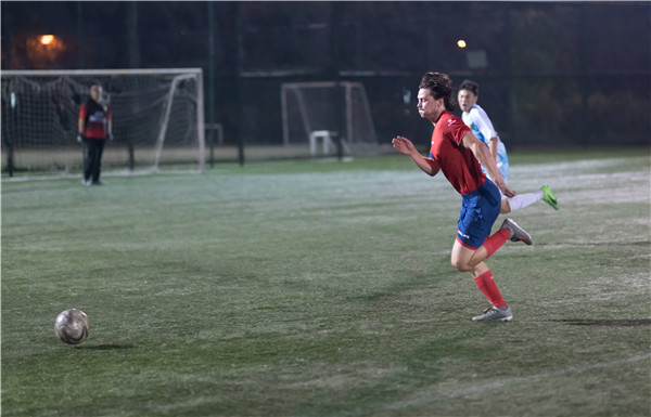20:30,比赛准时吹响战角。开场后,面对压力,机械动力学院后场不慌不乱,队员们逐渐寻找到了决赛的状态。机械动力学院10号Martin Klevjer一过四射正,拉开了进攻的帷幕。