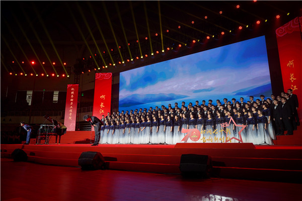 本次“一二·九”歌会分为四幕,分别为星火燎原、旭日东升、改革兴邦、砥砺前行。beat365中文官方网站合唱队带来的是第三幕的《长江之歌》。