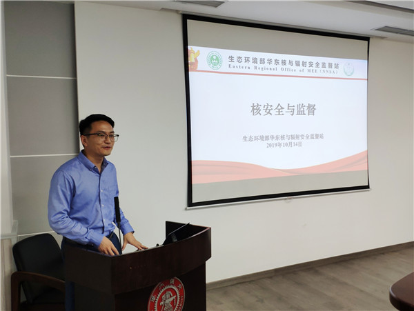 此次来我校宣讲的生态环境部华东核与辐射安全监督站成立于1987年,是中国大陆第一个地区监督站,负责监管上海、江苏、浙江、安徽、福建、江西、山东等华东六省一市核与辐射安全。华东地区运行核电机组约占全国机组综述45%,核技术利用项目约占全国一半,核与辐射安全监管重任在肩!
