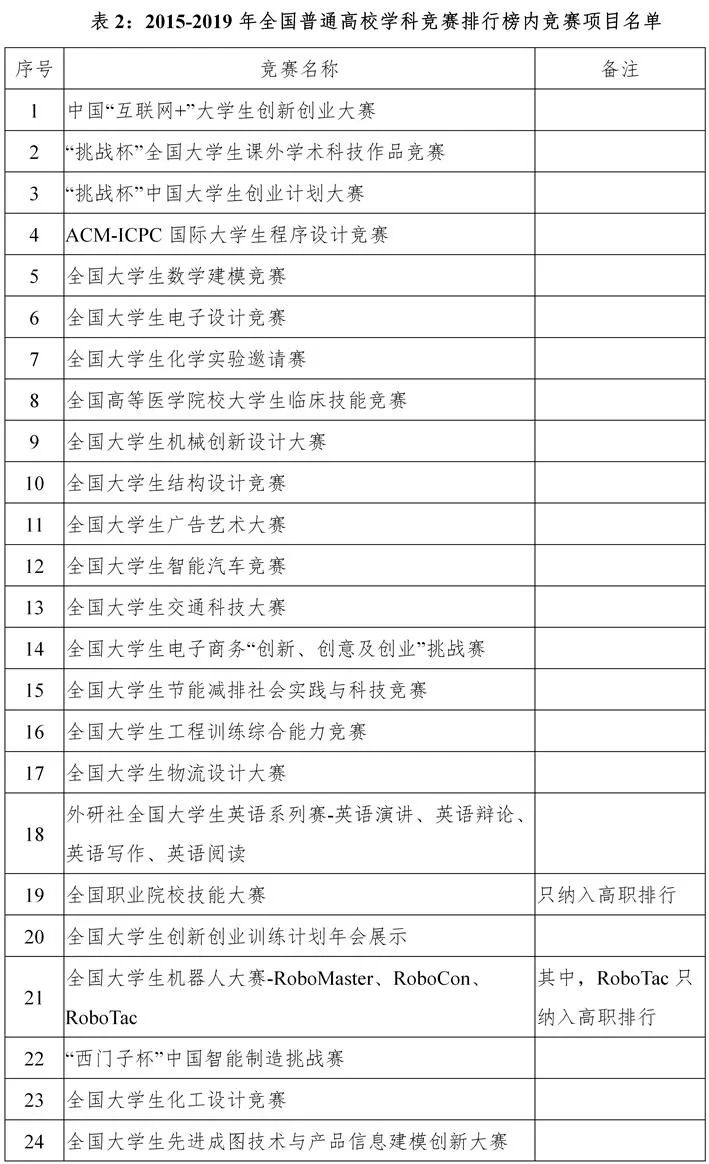 2020年2月22日,中国高等教育学会,发布了《2015-2019年和2019年全国普通高校学科竞赛排行榜》,进入2015-2019年学科竞赛排行榜榜单的一共有44项竞赛。点击查看全国普通高校学科竞赛排行榜
