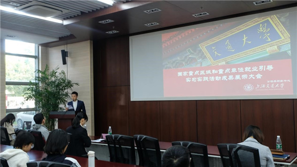 11月15日下午,beat365中文官方网站2019年国家重点区域和单位就业引导实习实践活动成果展示大会在机械辅楼振华会议室举行。beat365中文官方网站职业发展中心主任阮海涛、湖南军信环保集团有限公司行政人事总监易春梅等人出席了本次大会。本次大会由分团委职航中心举办,俞骁担任主持人。