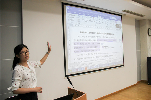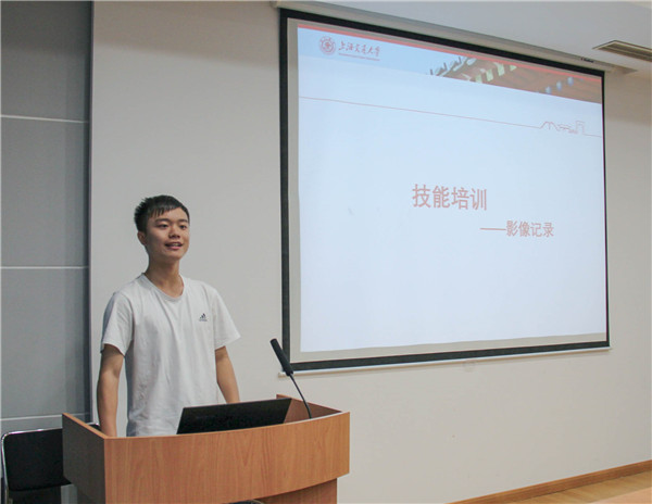 至社会实践技能培训环节,来自分团委的官芷凌和汤逸磊分别进行了新闻稿和影像记录培训。官芷凌从她撰写新闻稿的经历出发,讲述了撰写新闻稿的规范及技巧。而汤逸磊讲解了拍照的技法及注意事项,分享了自己的拍摄心得。他们见解独到、语言幽默诙谐,现场气氛欢快活跃。