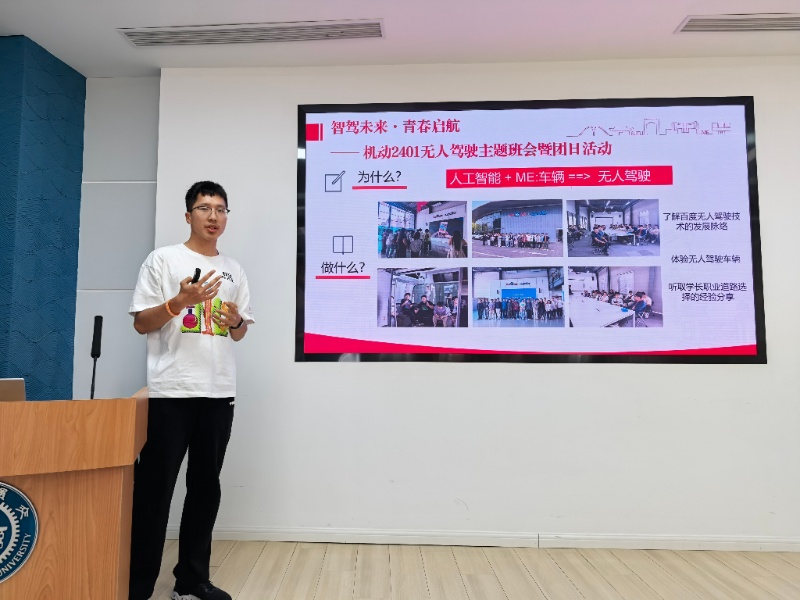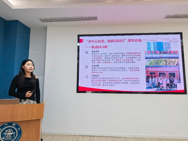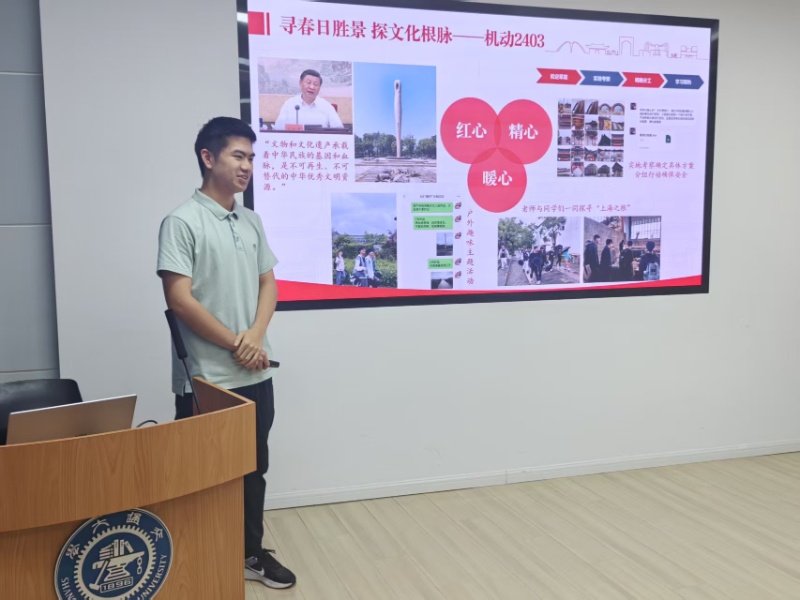 各班级项目负责人依次汇报了活动成果并进行了经验总结。在“红色之旅”主题活动中,机动2314班陈建伟带领班级同学参观了中共一大会址、新青年编辑部旧址等地,在研学中更加明确了青年人肩负的时代使命,深刻领悟了交大学子的责任与担当。机动2403班戴嘉豪同学则以“寻春日胜景,探文化根脉”为主题,分享了班级前往广富林文化遗址公园开展团建活动的经历。通过探访文化地标,班级凝聚力得到有效增强,同学们对文化内涵的认同和理解也得到了提升。其他班级代表也依次展示了各自的活动计划与成果,涵盖缅怀革命烈士、户外团队建设、企业走访参观等多样化实践主题。