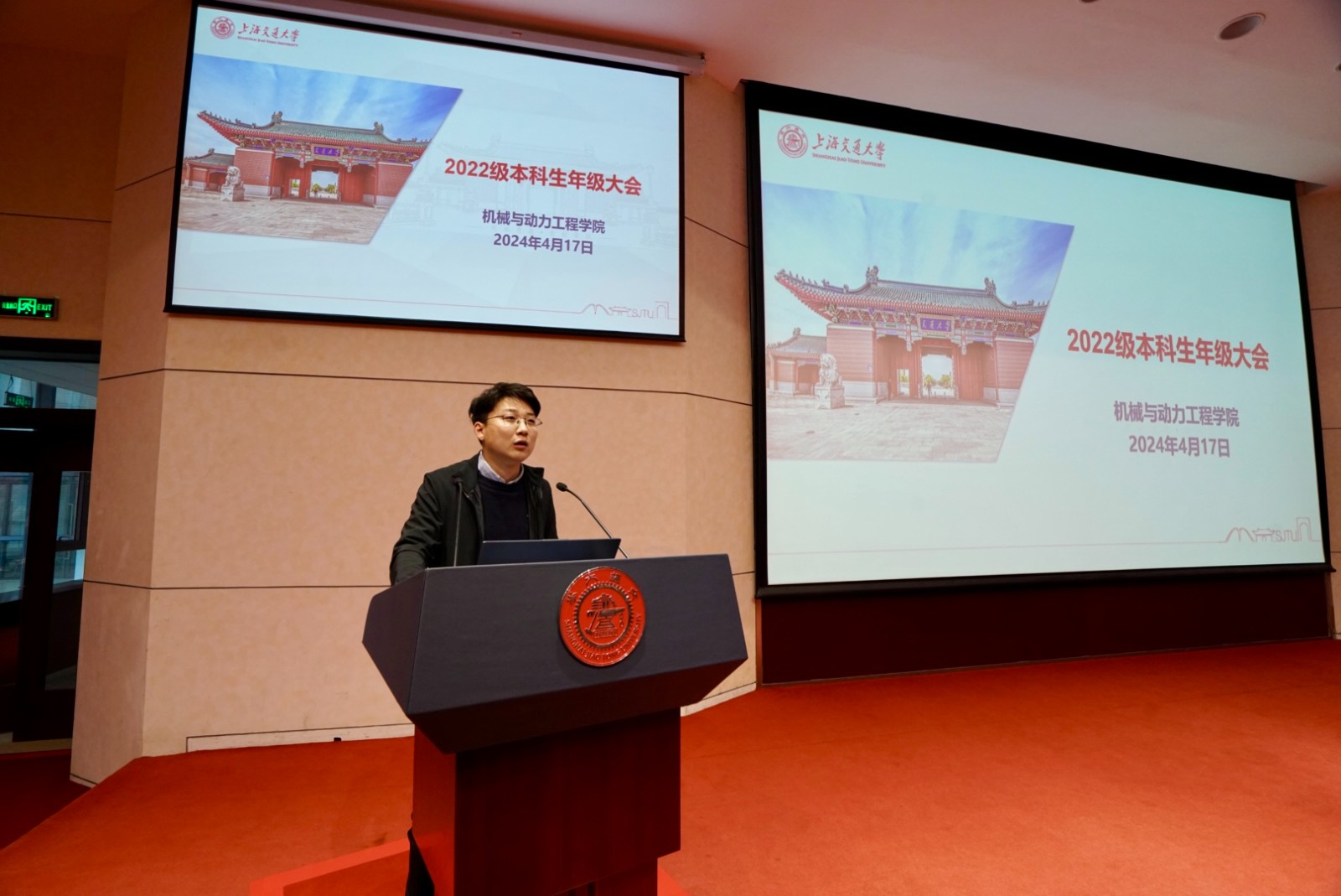 4月17日下午,beat365中文官方网站2022级本科生年级大会于陈瑞球楼100号召开。《科学研究与创新实践》课程负责人、学院副教授邓宇君、2022级本科生教务裴剑、2022级本科生年级组长黄炎康、现代设计所2023级直博生刘松恺、全体2022级本科生出席本次年级大会,大会由黄炎康主持。