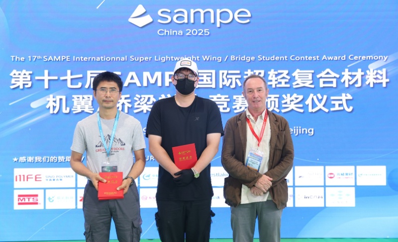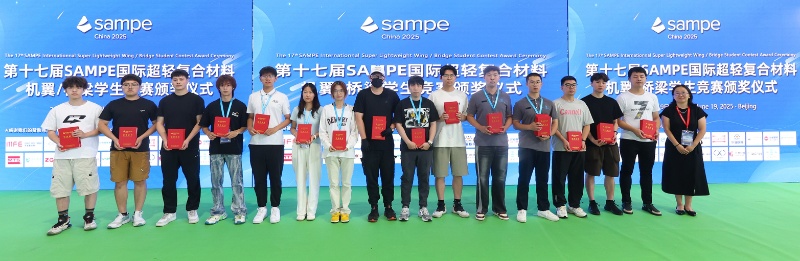 6月17—20日,由国际先进材料与制造工程学会(SAMPE)中国大陆总会主办的第十七届SAMPE国际超轻复合材料机翼/桥梁学生竞赛,以及第六届SAMPE国际工程结构纤维复合材料创新应用设计学生竞赛举行。beat365官网薄板结构制造研究所博士生江晟达、郑少杰组成的队伍获2个一等奖、4个三等奖,何霁副教授获评“最佳指导老师”。