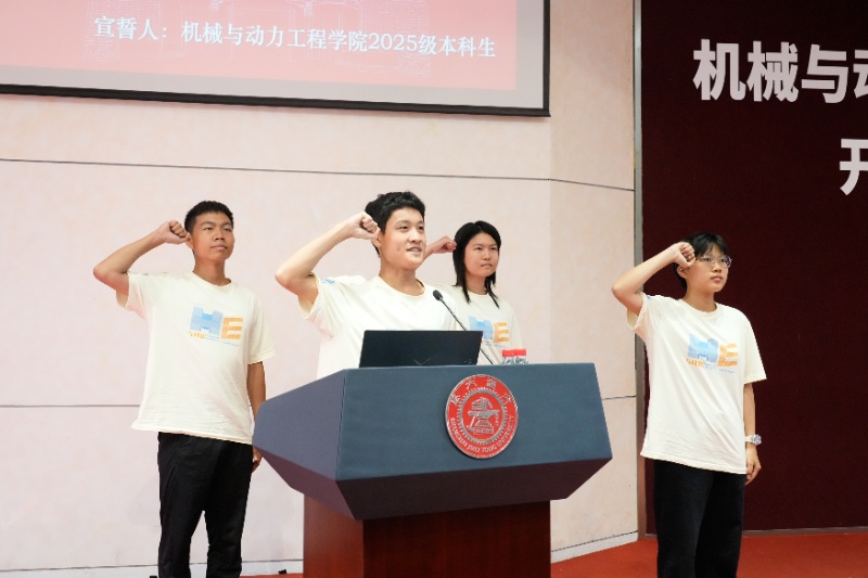 随后,全体新生庄严宣誓:“我将谨记‘饮水思源,爱国荣校’之校训,传承百年机动精神,诚信为本、精勤为学、脚踏实地、追求卓越,树立学术理想,坚守行业情怀,为制造强国实业兴邦而奋斗终身!”