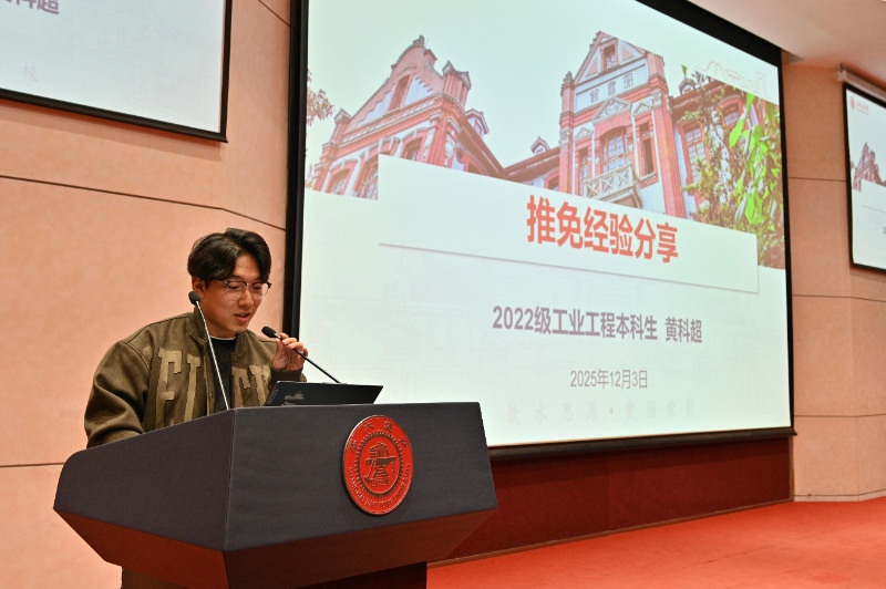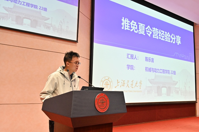 为增强同学们对升学过程的直观了解,大会特邀2022级优秀本科生代表进行经验分享:陈乐言结合机械动力类专业特点,详细介绍了硕士研究生推免夏令营的具体环节与面试准备要点;黄科超则从工业工程专业角度出发,分享了申请直博生的录取流程与相关细节。两位同学的实用经验为在场同学提供了宝贵参考。