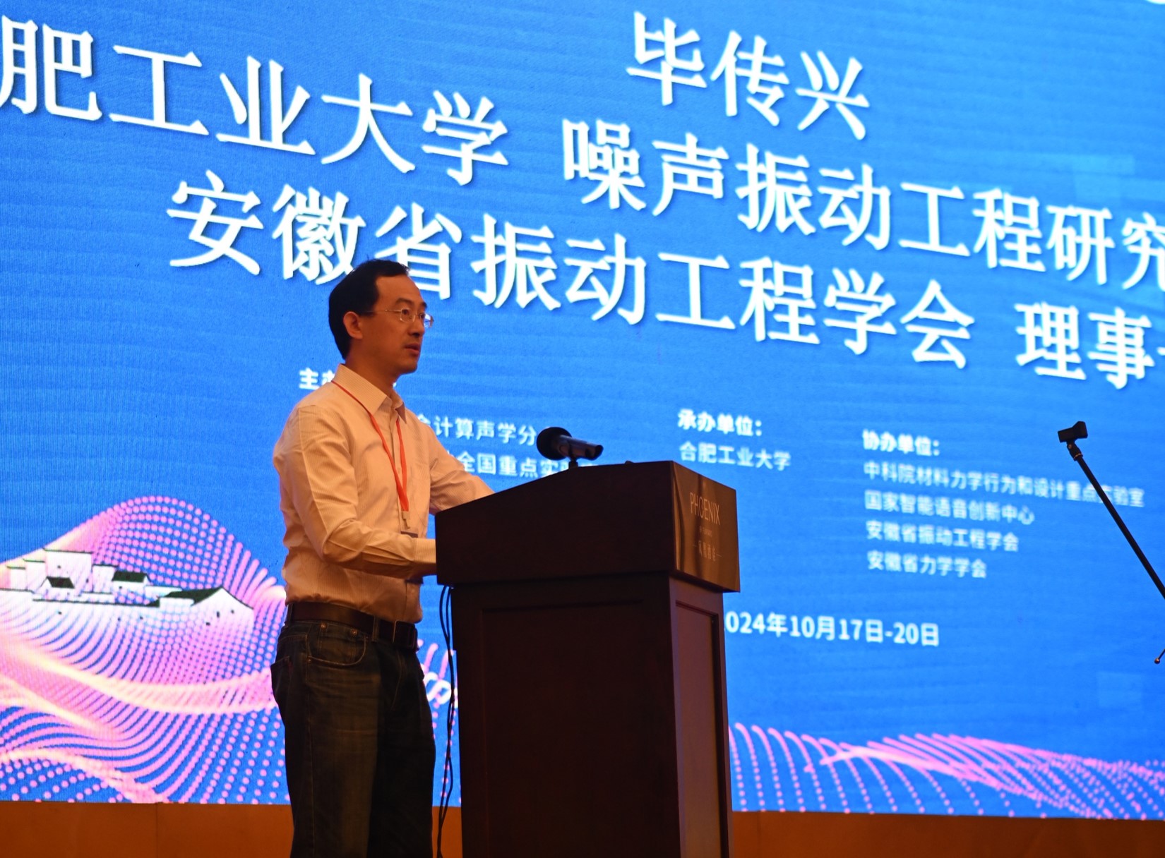 安徽省振动工程学会理事长、合肥工业大学噪声振动工程研究所所长毕传兴教授介绍了合肥工业大学噪声振动研究所的发展历程,希望本次大会能为各位专家学者提供高水平的学术交流平台,共同促进计算声学领域的发展与创新。