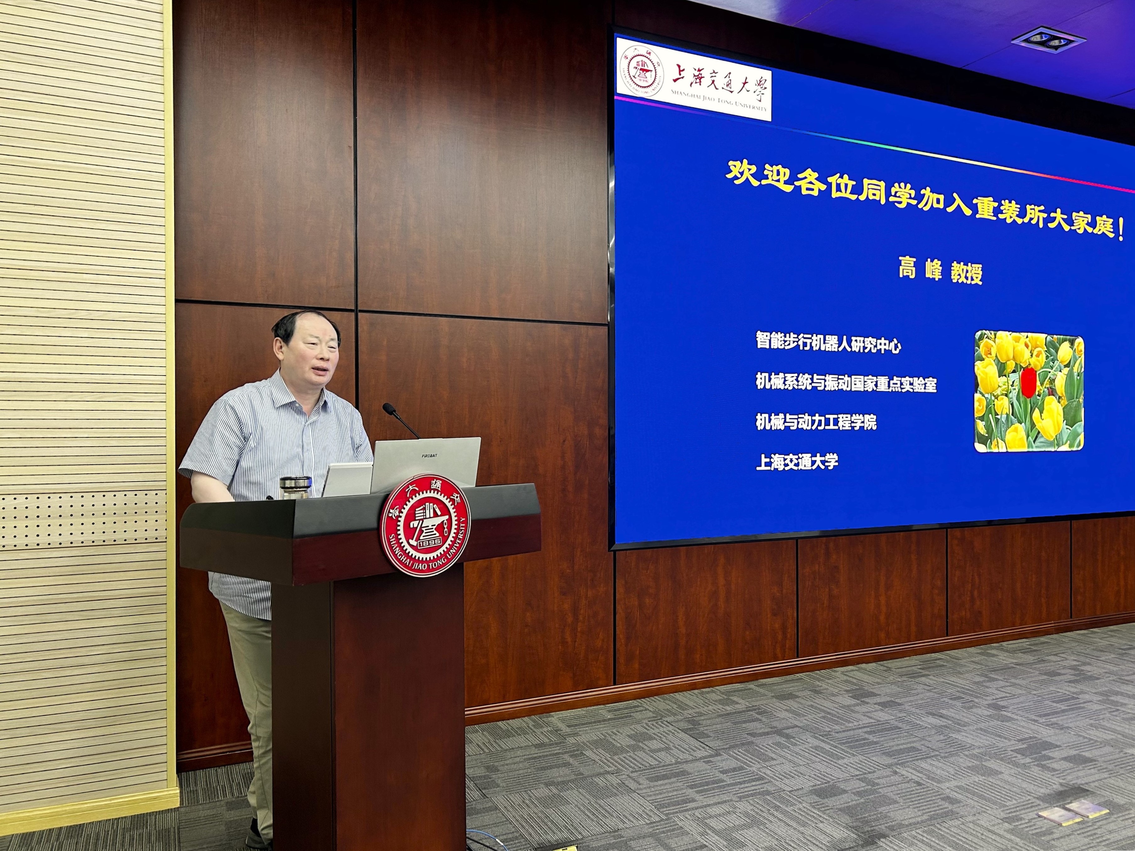 高峰教授带来了精彩的“开学第一课”,介绍了研究所的研究方向,指出机构学是连接科学、工程和人工智能的桥梁,对机器人的构建与应用发挥着不可或缺的作用,研究所聚焦机构与机器人的设计、控制和应用,在功能构型、性能综合、行为控制和工程应用等方向开展研究。“善学者尽其理,善行者究其难”,高峰教授还结合自身经历,勉励大家知行合一,深耕自己所热爱的领域,用“择一事,终一生”的态度做自己人生路上的胜利者。