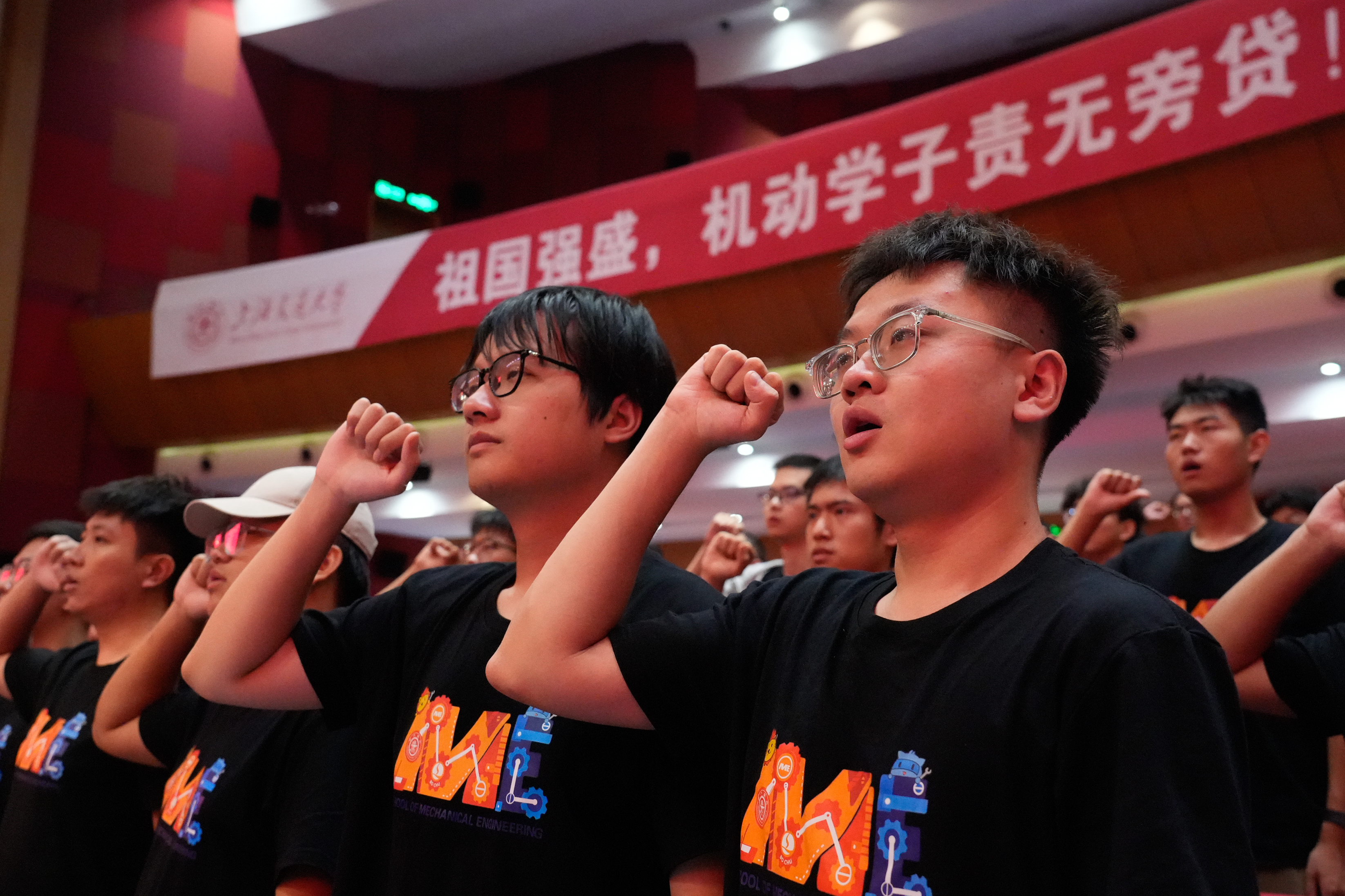 全体新生庄严宣誓,开启人生新的旅程:“我将谨记‘饮水思源、爱国荣校’之校训,传承百年机动精神,诚信为本、精勤为学、脚踏实地、追求卓越,树立学术理想、坚守行业情怀,为制造强国实业兴邦而奋斗终身。”