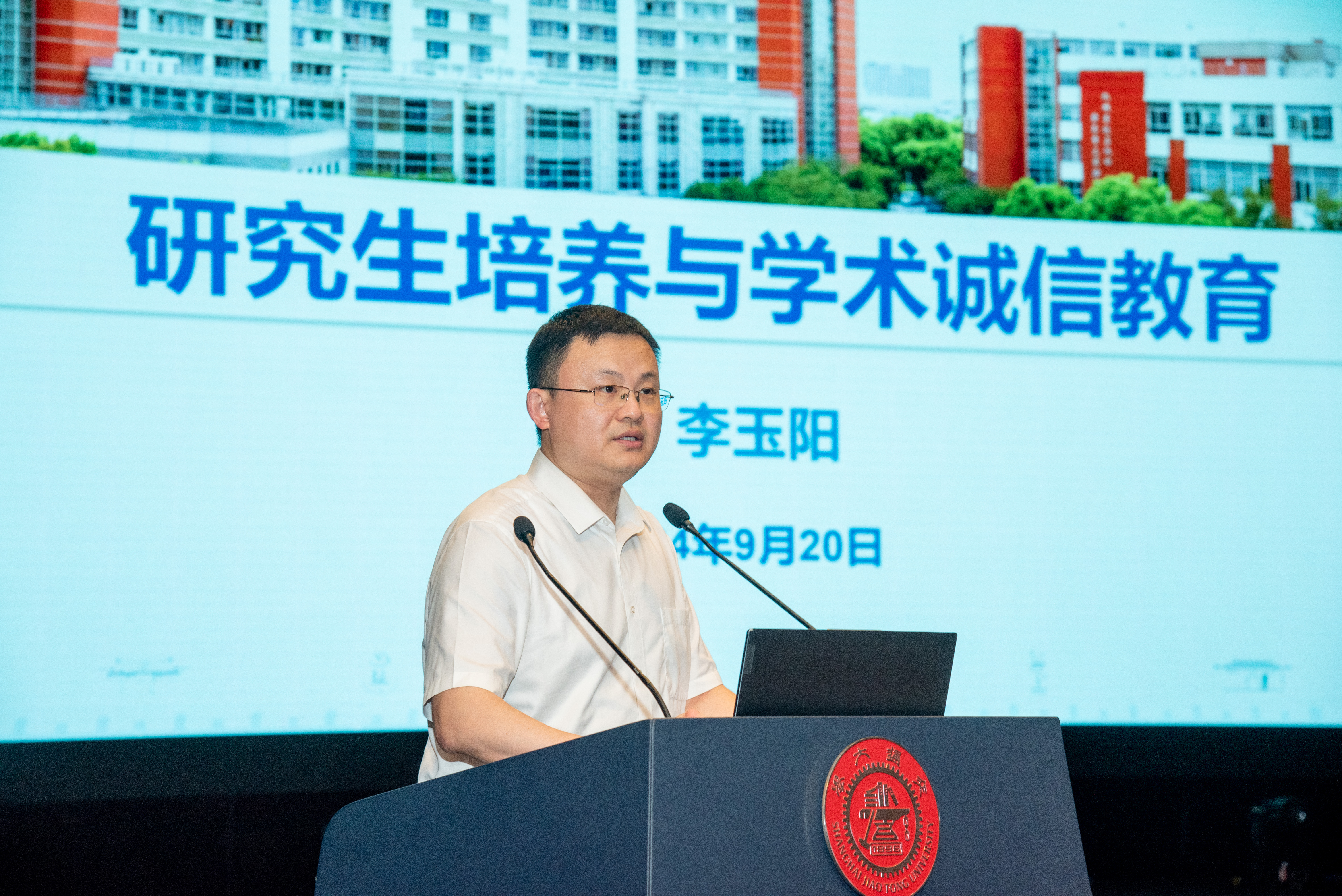 李玉阳详细介绍了学院研究生培养模式和相关政策,强调了学术诚信要求,鼓励大家珍惜时光、勤学好问、立志报国。