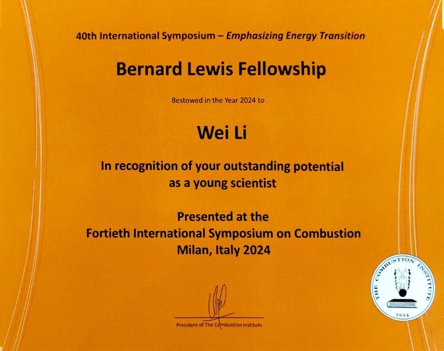 7月21-26日,在第40届国际燃烧会议上,beat365官网航空动力研究所助理教授李伟获国际燃烧学会颁发的Bernard Lewis奖。本次共有六位青年学者获奖,李伟是唯一来自中国的获奖者。
