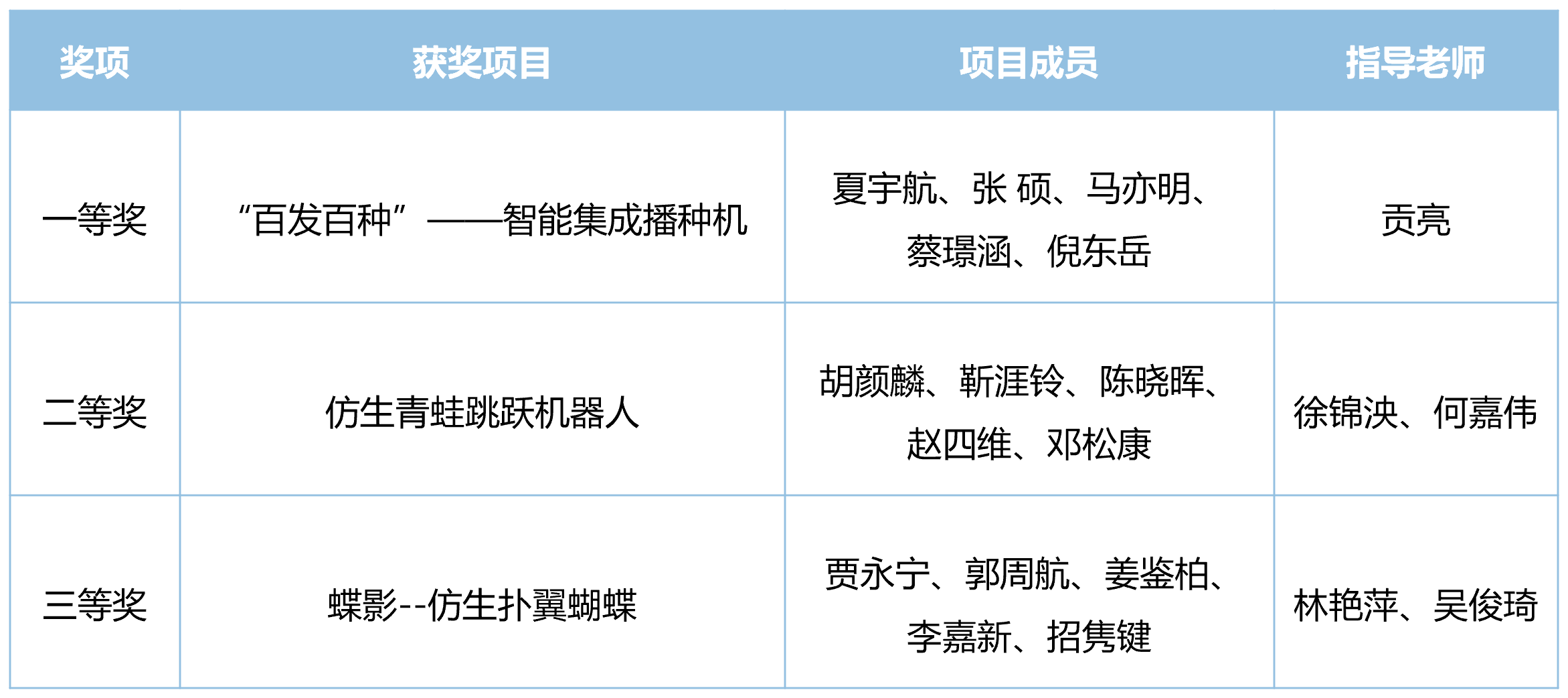 获奖项目列表: