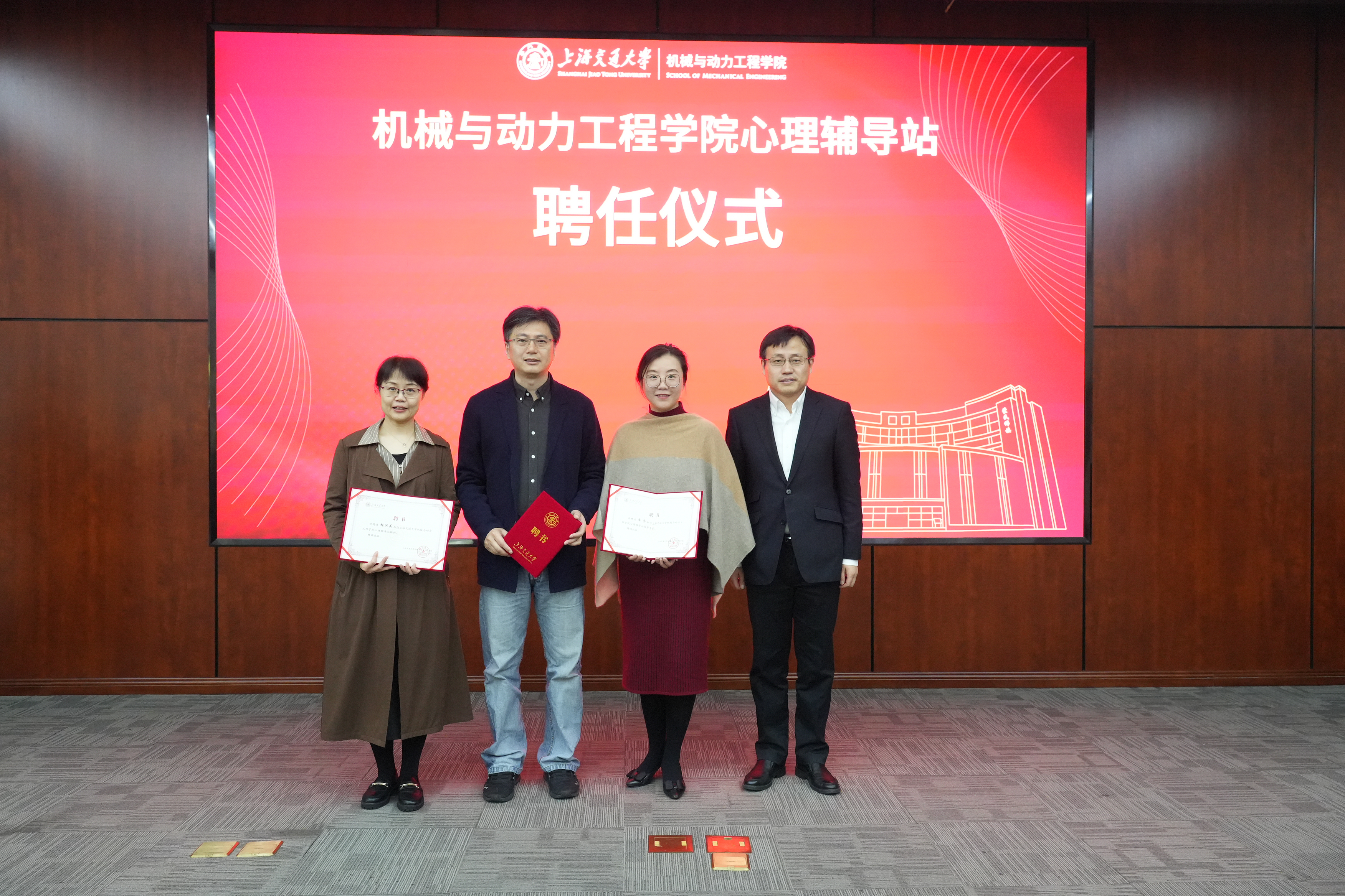 胡薇薇、康健、胡永祥、张执南共同为学院心理辅导站揭牌。胡永祥宣读了聘任名单,并为辅导站顾问及指导专家颁发了聘书。